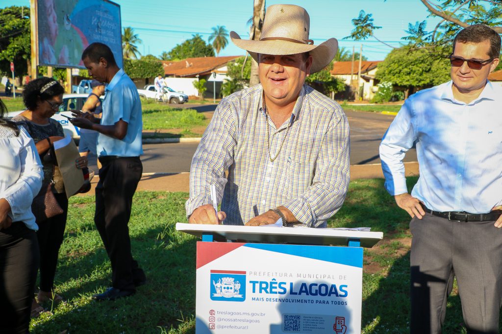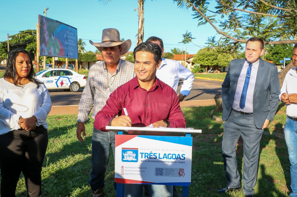 O Prefeito Angelo Guerreiro, acompanhado dos Secretários Municipais e vereadores de Três Lagoas realizaram na manhã desta terça-feira (29), a Ordem Serviço que autoriza o inicio das obras de recapeamento da Avenida Rosário Congro.
