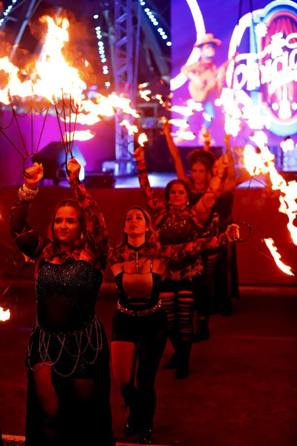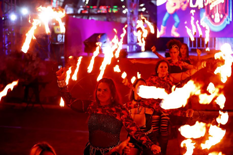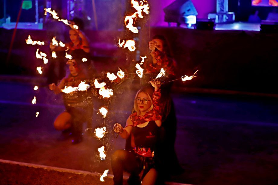 À noite, a festa continuou com apresentações de dança, batalhas de rima e shows das bandas Fusion Bones, Gravata Fake, Duo Pop e DJ Will, que prepararam o público para o aguardado show principal.