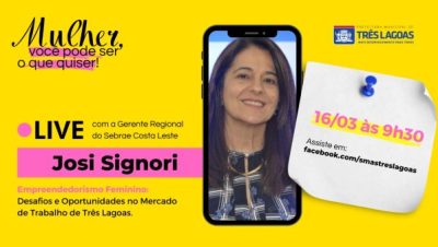 Dando continuidade às ações alusivas ao Dia Internacional da Mulher, a Secretária Municipal de Assistência Social (SMAS) promove nesta quarta-feira (16), às 9h, uma Live sobre o Empreendedorismo Feminino. A palestrante será a Gerente da Regional Costa Leste do SEBRAE, Josi Signori, que vai falar sobre os Desafios e Oportunidades no Mercado de Trabalho de