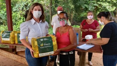 Na manhã desta quinta-feira (25), 87 famílias residentes do Distrito de Arapuá e Assentamento 20 de Março, receberam doação de cestas básicas por meio da parceria entre a Secretaria Municipal de Assistência Social (SMAS), com o Programa Agro Fraterno do Serviço Nacional de Aprendizagem Rural (SENAR) e da Confederação da Agricultura e Pecuário do Brasil