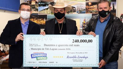 Ontem, quarta-feira (14), o prefeito de Três Lagoas, Angelo Guerreiro esteve na Governadoria do Estado, em Campo Grande, para assinar convênios de emenda parlamentar no valor de R$240 mil destinados pelo Deputado Estadual, Eduardo Rocha que atendeu solicitações de seis vereadores do Município. Os recursos fazem parte do montante de R$ 36 milhões liberados pelo