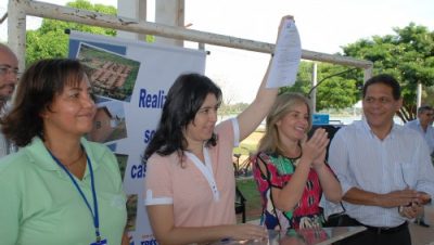 ‘A prefeita Simone Tebet (PMDB) juntamente com o Governador do Estado do Mato Grosso do Sul, André Puccinelli (PMDB) entregaram na tarde deste sábado (26) a construção de 124 casas em quatro residenciais.Acompanharam a solenidade o senador da república, Pedro Simon (PMDB), a esposa do senador Ramez Tebet, Fairte Tebet, o deputado federal Valdemir Moka