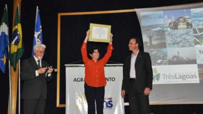 A prefeita de Três Lagoas, Marcia Moura (PMDB) foi homenageada na noite de terça-feira (18), pela Associação Brasileira Técnica de Celulose e Papel (ABTCP), durante a abertura da 3ª Semana de Celulose e Papel de Três Lagoas, realizada na sede da Faculdade Aems. Na ocasião, a chefe do Poder Executivo apresentou as potencialidades econômicas