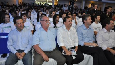 O secretário de Desenvolvimento Econômico, Luciano Dutra, participou na tarde desta sexta-feira (21), no Leiloado, da entrega de certificados para 671 alunos concluintes de diversos cursos do Senai, com a presença do presidente da Fiems, Sérgio Longen e o senador Delcídio do Amaral.