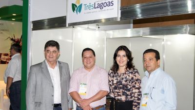 No segundo dia do 3º Congresso Florestal de Mato Grosso do Sul, nesta quarta-feira (10), autoridades visitaram o stand de Três Lagoas, montado no local, onde o secretário de Desenvolvimento Econômico, Luciano Dutra e o diretor de Indústrias e Comércio, Diógenes Marques recebem a todos e apresentam as potencialidades do Município.