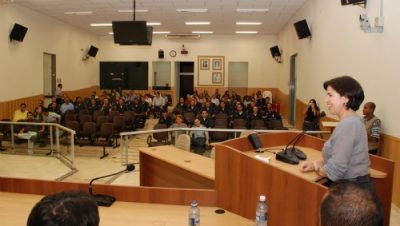 ‘A prefeita Márcia Moura (PMDB) participou na noite de sexta-feira (28) do encerramento do curso de Formação e Capacitação de Agentes de Fiscalização de Trânsito, na Câmara Municipal. O curso foi promovido pelo DEPTRAN, em parceria com a Polícia Militar, Câmara de Vereadores e CETRAN, que prestou orientação técnica. Na ocasião 36 policiais militares, um