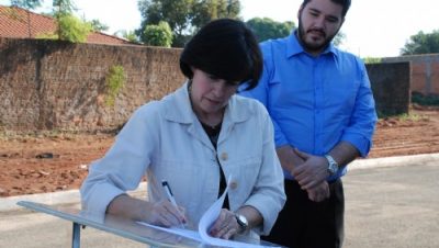 ‘A prefeita Simone Tebet (PMDB) assinou nesta terça-feira (30) a Ordem de Serviço para a execução da obra de pavimentação asfáltica e drenagem de águas pluviais no bairro Santa Rita.Presentes a assinatura da Ordem de Serviço a vice-prefeita Márcia Moura, os vereadores Fernando Milan (PMDB) e Celso Yamaguti (DEM) o gerente geral da unidade da