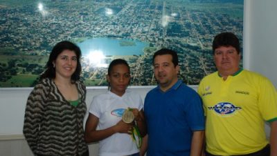 ‘Os atletas de fitness Amado Moura, Marli Moura e Gilceles de Oliveira foram recebidos pela prefeita Simone Tebet (PMDB), na manhã desta quarta-feira (29), para apresentarem os troféus e medalhas conquistados no Troféu Sul Sudeste de Culturismo e Fitness. A competição foi realizada no dia 25 de abril na cidade de Suzano (SP). De acordo