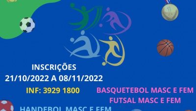 Atenção atletas clubes e empresas três-lagoenses e da região as inscrições para Jogos Abertos de Três Lagoas (JATs) 2022 e 3ª Copa Sejuvel vão até o dia 08 de novembro (terça-feira). Serão disputadas quatro modalidades: futsal, voleibol, basquete e handebol, todas nas categorias feminina e masculino. Podem se inscrever quaisquer entidades (clubes, empresas, associações, etc)
