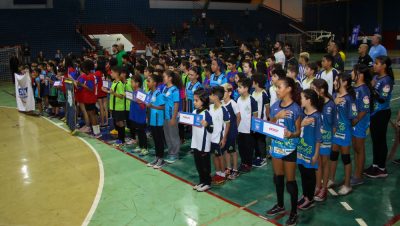A Secretaria Municipal de Esporte, Juventude e Lazer (SEJUVEL) promoveu na noite de ontem, quinta-feira (22), no Ginásio Municipal de Esportes “Cacilda Acre Rocha”, a abertura oficial dos Jogos Escolares Três-lagoenses “JET’s” 2022 – modalidades coletivas e individuais. Com a presença da delegação das 13 escolas participantes, o diretor de Desporto da SEJUVEL, Wando Barros