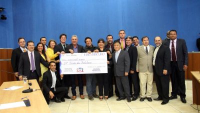 O prefeito de Três Lagoas, Angelo Guerreiro, participou da sessão de reabertura da Câmara Municipal neste segundo semestre que aconteceu nesta terça-feira, 01 de agosto. Durante a Sessão, o Prefeito recebeu um cheque simbólico referente à devolução de R$ 100.000,00, (Cem mil reais) referente à economia do duodécimo do primeiro semestre do ano de 2017