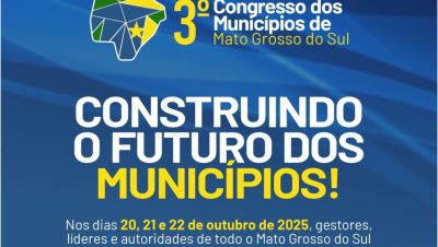 Considerado o maior evento municipalista do estado, o 3º Congresso dos Municípios de Mato Grosso do Sul será realizado nos dias 20, 21 e 22 de outubro de 2025, no Bosque Expo, em Campo Grande, e reunirá gestores, vereadores, técnicos e autoridades para discutir os rumos da gestão pública e promover o fortalecimento das administrações