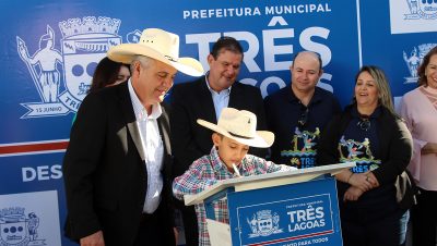 O prefeito de Três Lagoas, Angelo Guerreiro, acompanhado da primeira dama Leide Daiane e da maioria dos Secretários da atual gestão municipal, assinou ordem de serviço para a construção de novo Parquinho Infantil da Lagoa Maior, na manhã de sábado, 15 de junho, quando se comemorou o 104º Aniversário da Cidade. A assinatura foi após