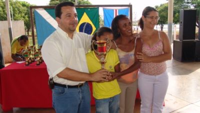 Nesta sexta-feira (29) foram entregues os troféus de premiação do 2º Jogos da Rede Municipal de Ensino (JO-REME). O vento foi realizado nas quadras da Secretaria de Juventude e Lazer (Sejuvel) e contou com a presença de professores, alunos e também da Secretária de Educação e Cultura Márcia Moura e do Secretário da Sejuvel, Luciano