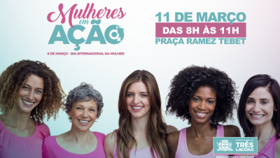 Em comemoração ao mês da Mulher, a Prefeitura Municipal de Três Lagoas, por meio da Secretaria Municipal de Assistência Social, realizará o “Mulheres em Ação”, em parceria com diversas Secretarias e instituições da Cidade, no sábado (11), das 8h às 11h, na Praça Ramez Tebet e no prédio do Senac, localizado à Avenida Antônio Trajano,