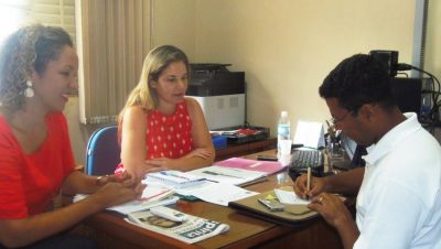 A secretária de Assistência Social, Vera Helena Arsioli e a secretária adjunta Leide Dayane, receberam nesta quarta-feira (25) o representante do Programa de Educação Ambiental (PEA) da Fibria, Laércio Fradique de Moura que é biólogo .