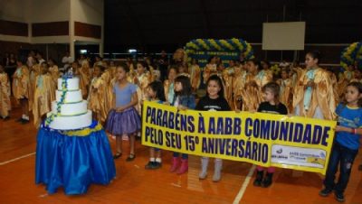 ‘No último dia 29 de junho o Programa AABB Comunidade realizou um evento alusivo à comemoração do aniversário de 15 anos da implantação do Programa em Três Lagoas. O tema escolhido pela equipe para comemorar a data foi 15 anos de Inclusão Social, desenvolvendo a Pedagogia do Amor.O Programa foi efetivado no município no ano