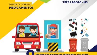 O Conselho Regional de Farmácia do Mato Grosso do Sul (CRF/MS), em parceria com a Prefeitura de Três Lagoas por meio da Secretaria Municipal de Saúde (SMS), promove no próximo sábado (03), Drive-thru – Descarte Correto Medicamentos, em frente à entrada principal da Associação de Ensino e Cultura de Mato Grosso do Sul – Faculdades