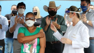 A técnica de enfermagem Edneia da Silva Barrem, que é servidora da Saúde há 14 anos em Três Lagoas, foi a primeira pessoa a receber a dose da vacina contra COVID-19 no Município. O ato simbólico aconteceu na manhã de hoje – quarta-feira (20) – na Unidade de Pronto Atendimento (UPA-24h) e marcou o início