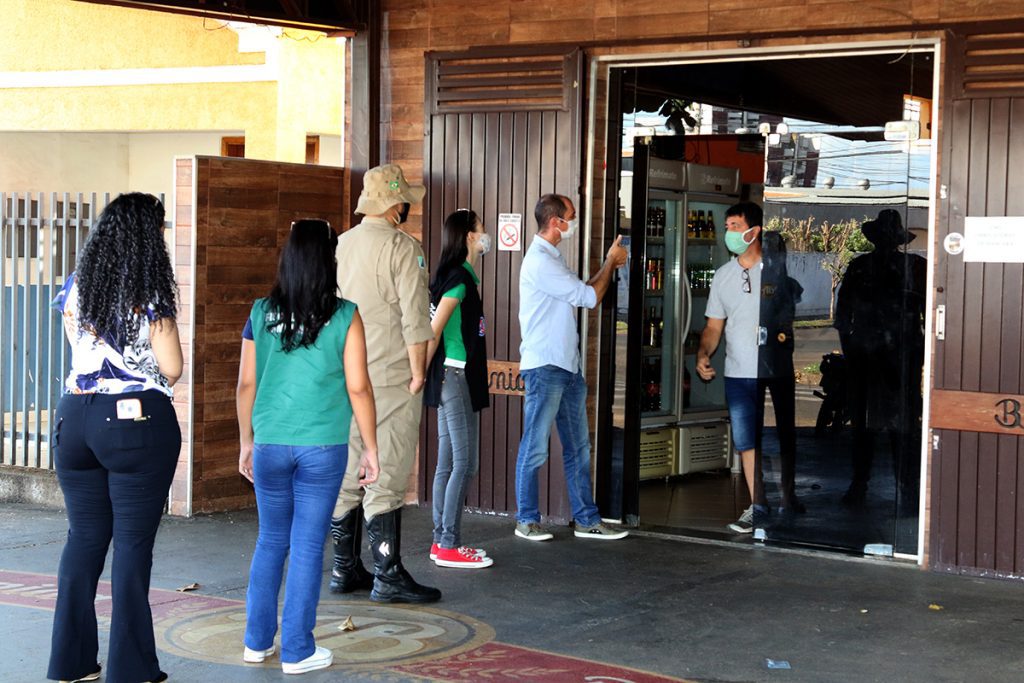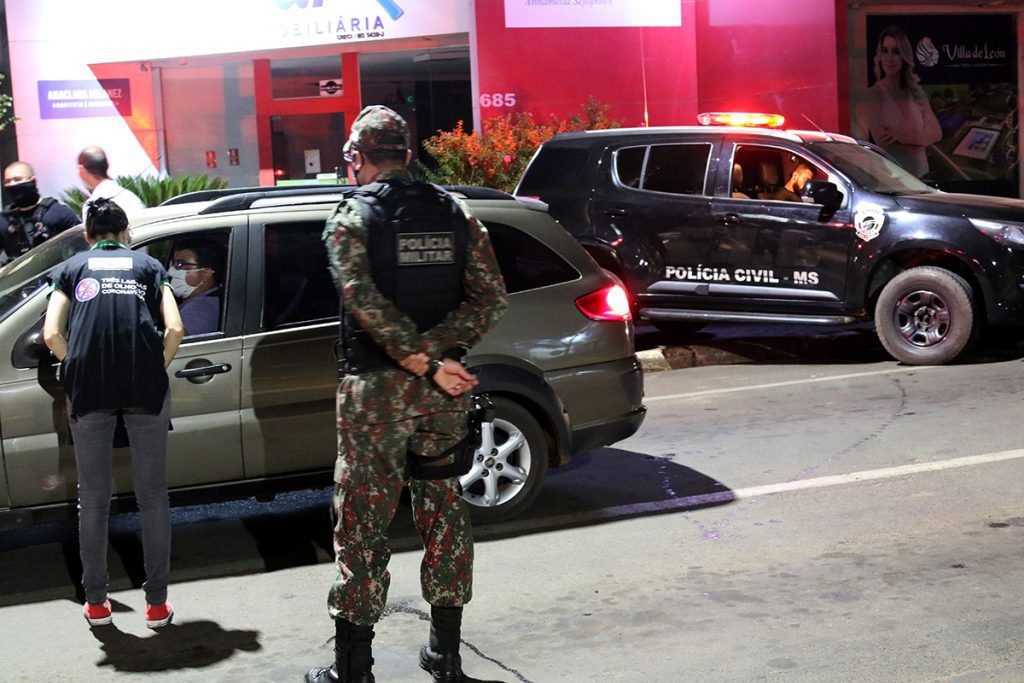 Também houve blitz nas avenidas Filinto Muller e Capitão Olinto Mancini. Os agentes esclareceram sobre o novo horário do toque de recolher (20h) aos motoristas, ciclistas e pedestres.