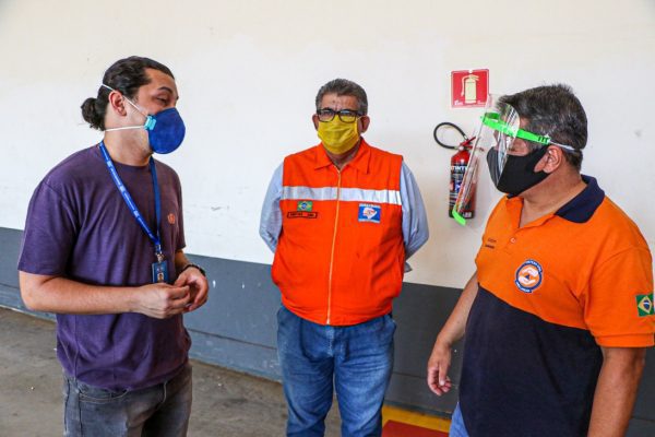 O médico, Vinícius de Jesus Rodrigues Neves, da Vigilância Epidemiológica (VIGEP), acompanhado de Eurides de Freitas, representando o Sindicato e do chefe da Defesa Civil, Welton Alves, tirou dúvidas dos gerentes e funcionários expondo a real situação do Município que atualmente encontra-se com números altos de morte e positivados.