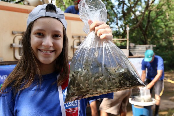 Cerca de 120 mil alevinos foram soltos na última sexta-feira (29) no Condomínio Residencial Encontro das Águas (Vila Operadores) por alunos de 13 a 16 anos da Escola Municipal Professora “Maria Eulália Vieira”. A ação faz parte do Programa Ambiental da CTG Brasil em comemoração ao Dia Mundial da Água.