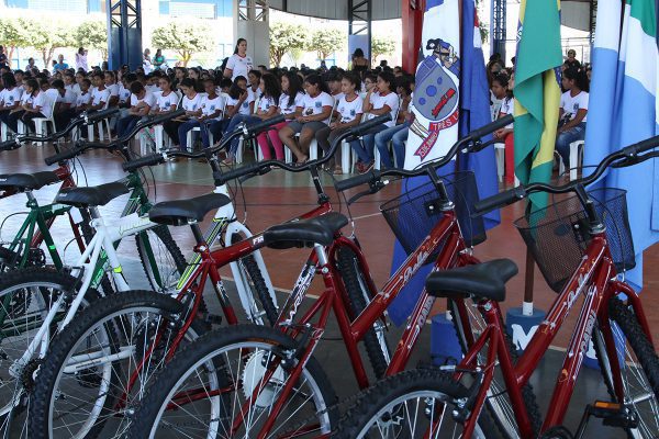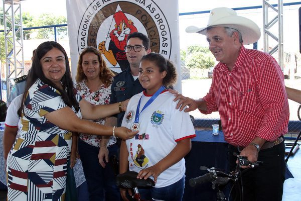 Junto com os certificados, os seis primeiros alunos classificados no concurso de redação foram gratificados com medalhas e bicicletas como a aluna Giovana Beatriz dos Santos, da Escola Municipal “Marlene de Noronha”.