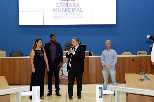 Participaram do evento o autor do projeto o vereador Professor Flodoaldo; a diretora do Departamento Pedagógico da SEMEC, Isabel de Lourdes Souza Borges; o coordenador do Conselho Tutelar de Três Lagoas, Daniel Batista Rosa e o filho da homenageada com o nome do projeto, André Luiz Oliveira Nogueira Fabbri.
