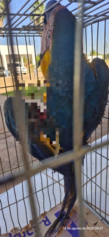 A Secretaria Municipal de Meio Ambiente e Agronegócio (SEMEA) informa que uma arara-canindé sofreu um grave ferimento após ter a asa cortada por uma linha de pipa com cerol, na região da Vila Verde, em Três Lagoas. O incidente quase decepou a asa da ave, que foi resgatada por um servidor da Prefeitura.
