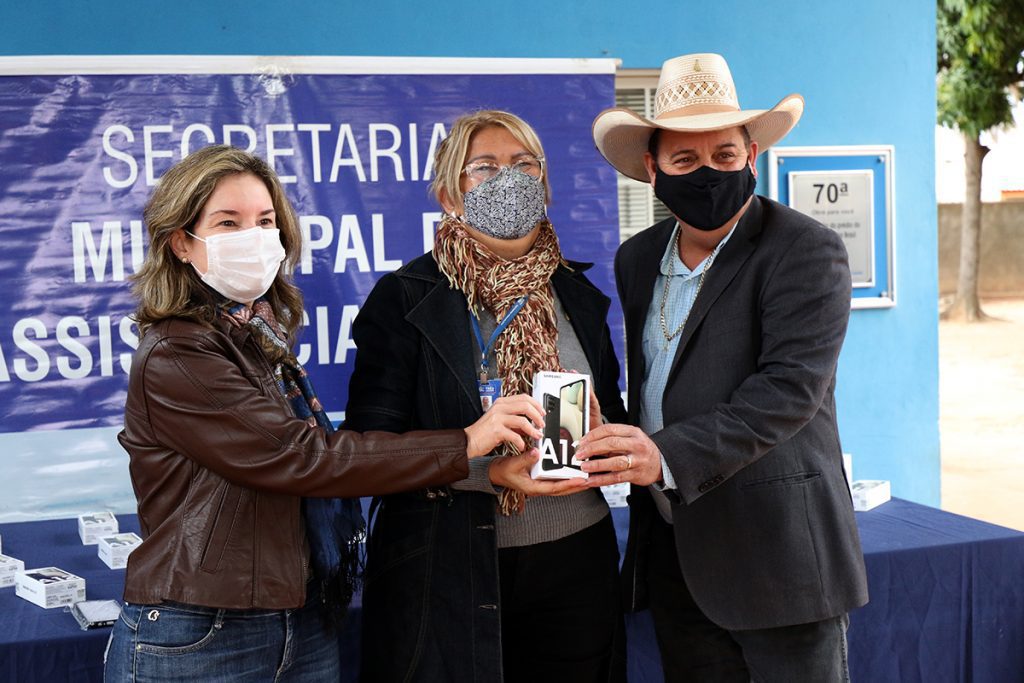 Na manhã desta quarta-feira (28), o prefeito Angelo Guerreiro oficializou a entrega de 38 smartphones para auxiliar os diretores e coordenadores dos programas e diversos serviços da Secretaria Municipal de Assistência Social.