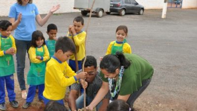 ‘A Administração Municipal de Três Lagoas, por meio das secretarias de Meio Ambiente, Educação e Cultura e Assistência Social, está promovendo durante esta semana várias ações em comemoração ao Dia Nacional da Árvore. No primeiro dia de comemoração os 450 alunos do Projeto AABB Comunidade fizeram uma apresentação de coral e aprenderam a plantar e