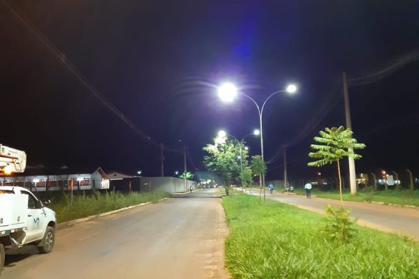 A Avenida Milton Batista Damasceno, que é ao lado da Aroeira, recebeu 22 postes e 44 luminárias de LED 150 W, totalizando então naquele perímetro 37postes e 74 luminárias.