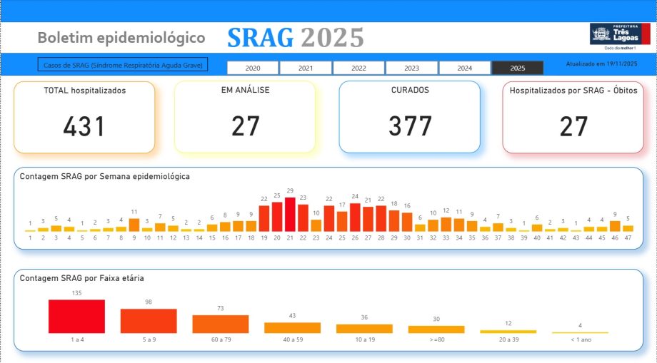 A Prefeitura de Três Lagoas, por meio do setor de Vigilância Epidemiológica da Secretaria Municipal de Saúde (SMS), divulga o Boletim Epidemiológico Influenza.