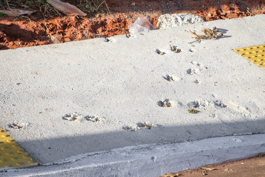 Nesta semana, as equipes realizaram o calçamento de algumas ruas no bairro São João e estes locais foram depredados, onde algum escreveram e caminharam sobre o cimento fresco, aparentemente, de forma proposital.