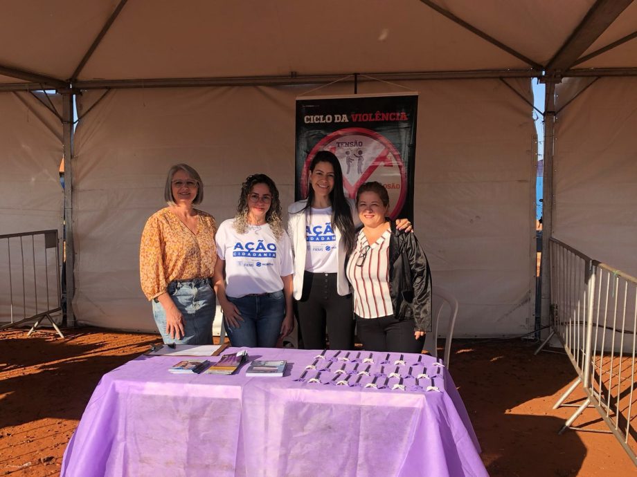 Para abertura das ações a equipe esteve na Ação Cidadania do Sesi, realizando panfletagem e explicando como funciona a rede de apoio oferecida pelo município às pessoas que necessitam do serviço.