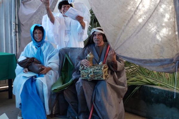 Na encenação, as figuras vivas do presépio, representadas por homens e mulheres assistidos pelo CAPS -AD, como Maria e José, o Anjo que anunciou o Nascimento de Jesus (Natal) e os três Reis Magos com os respectivos presentes, ouro, incenso e mirra.