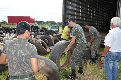 Mais uma vez, militares da 2º Companhia de Infantaria do Exército Brasileiro ajudaram no carregamento dos pneus no ECOPONTO, tendo o auxílio de um funcionário do CCZ. Segundo Empke, ações como esta devem continuar durante o ano.
