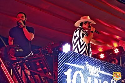 Comemorando 10 anos de carreira, os vizinhos de Três Lagoas, naturais de Ilha Solteira – SP, relembraram suas origens na cidade e a trajetória que os trouxe até ali. Antigos frequentadores das festas locais, agora eram eles os responsáveis por fazer a festa em um show que misturou sertanejo, axé e até clássicos do rock nacional.