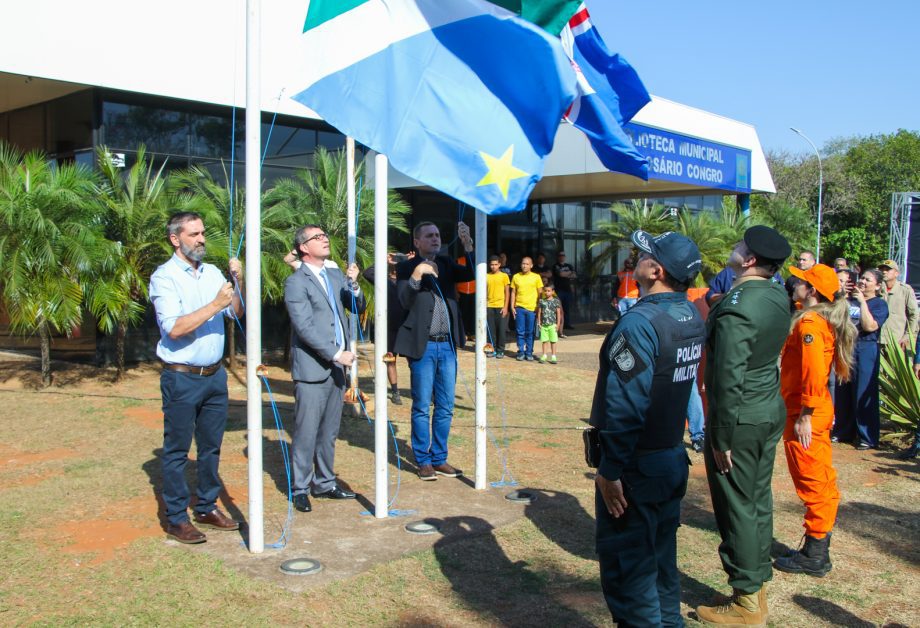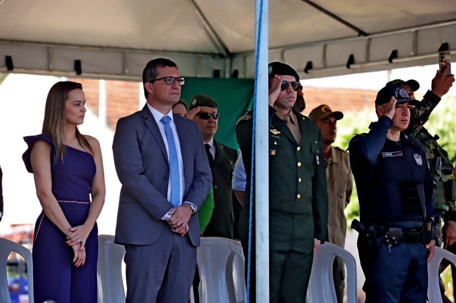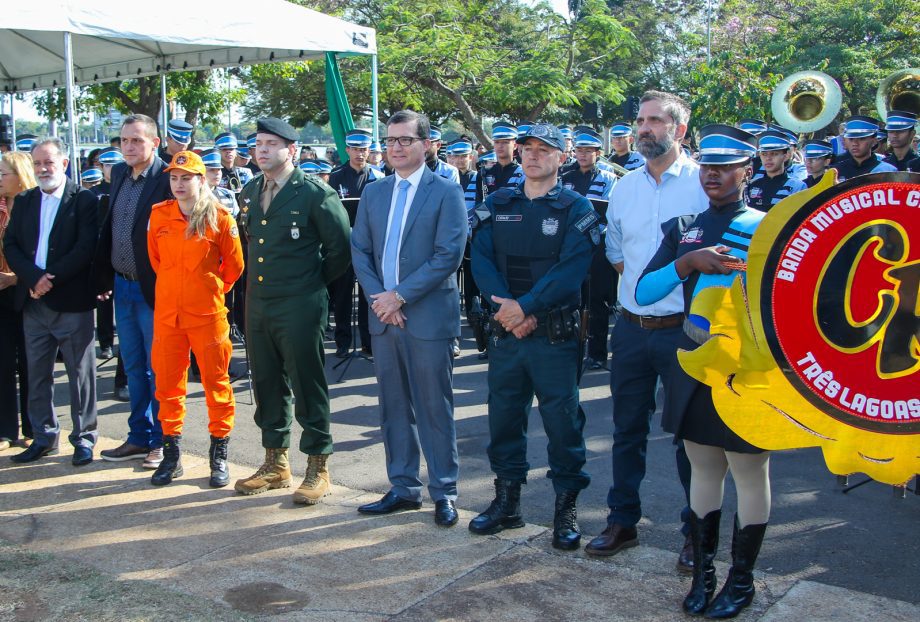 A cerimônia de hasteamento contou com a participação do prefeito Dr. Cassiano Maia, do vereador Adriano César Rodrigues e de Ricardo Henrique Cavanha, delegado regional adjunto da Polícia Civil, que representou o comandante do 5º Grupamento de Bombeiros Militar (GBM).