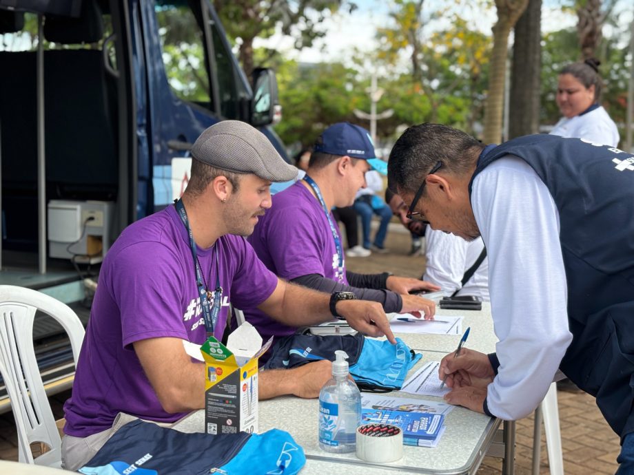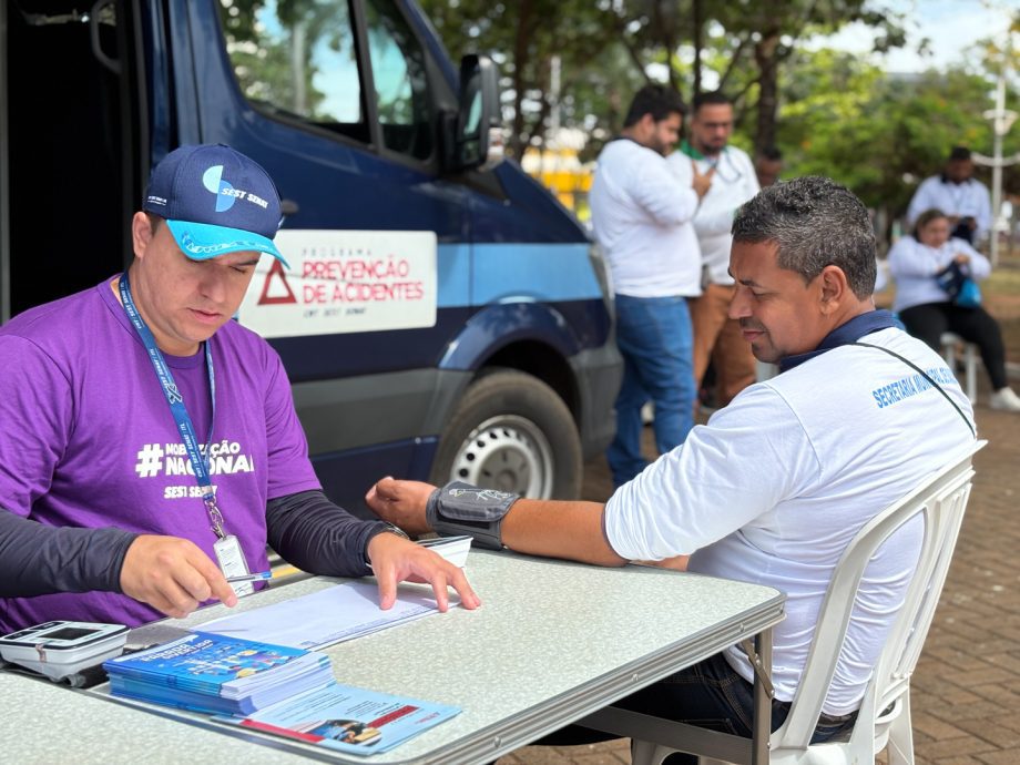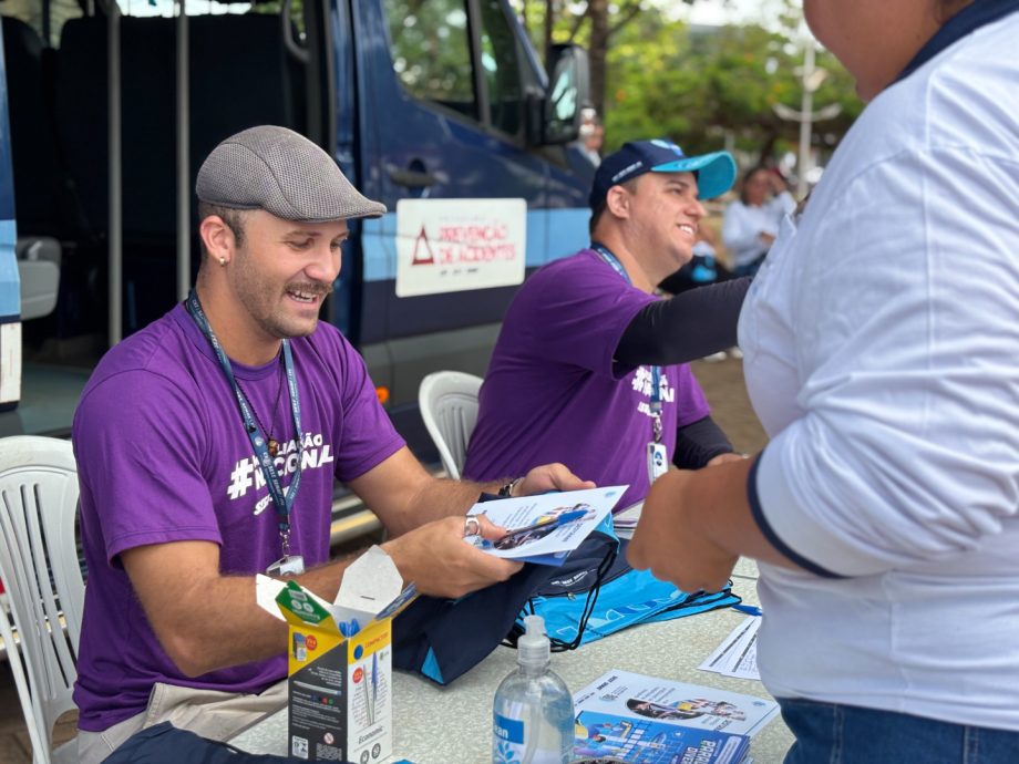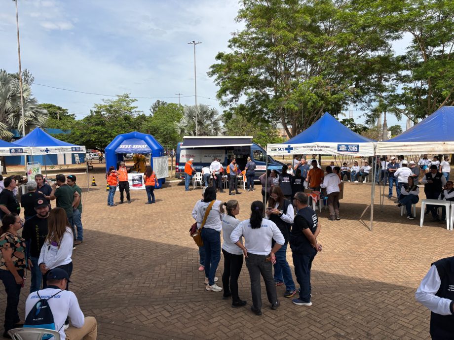 Blitz nos semáforos e distribuição de materiais informativos reforçaram os cuidados necessários para eliminar focos do Aedes aegypti. Na praça, estandes de Entomologia, Promoção da Saúde e Endemias apresentaram armadilhas, mapas de calor e equipamentos usados no combate ao mosquito.