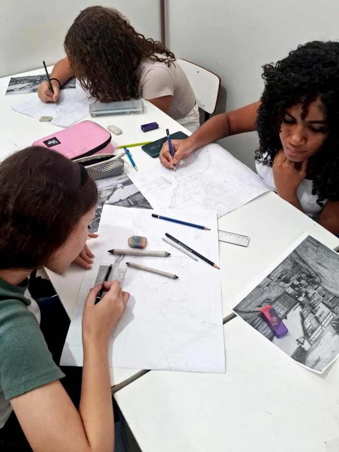 As atividades envolveram rodas de conversa, experimentações em diferentes técnicas de desenho e pintura, releitura de obras, colagem e práticas inspiradas na arte indígena. Todo o processo foi acompanhado por mediação pedagógica, garantindo acessibilidade e participação plena dos alunos com diferentes habilidades.