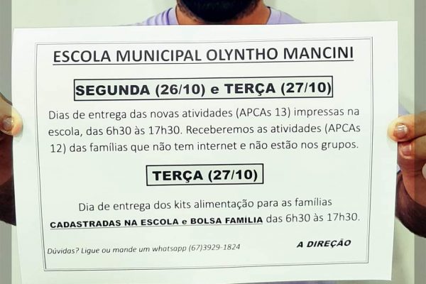 “No período da etapa eles fazem as atividades e postam as fotos/vídeos das devolutivas nos grupos de WhatsApp de cada turma. Alguns trazem na escola”, explicou o diretor.