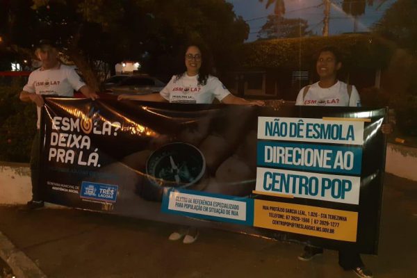 A Secretaria Municipal de Assistência Social (SMAS) de Três Lagoas, por meio das equipes do Centro de Referência Especializado para População em Situação de Rua – Centro POP, vem intensificando a campanha “Esmola? Deixa Para Lá”, nas principais avenidas e logradouros públicos de intenso movimento de pessoas.