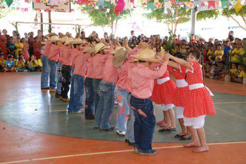 O casal de alunos e companheiros de quadrilha, Aires Henrique dos Anjos Caldas, 10 anos e Larissa Maiano Junqueira, 9 anos, ambos da Escola Presidente Médice, apresentaram-se na festa julhina. Sempre danço quadrilha. Estou gostando de participar, disse Aires. Essa é a primeira vez que dançamos juntos. Ensaiamos bastante para não errar, entregou Larissa.