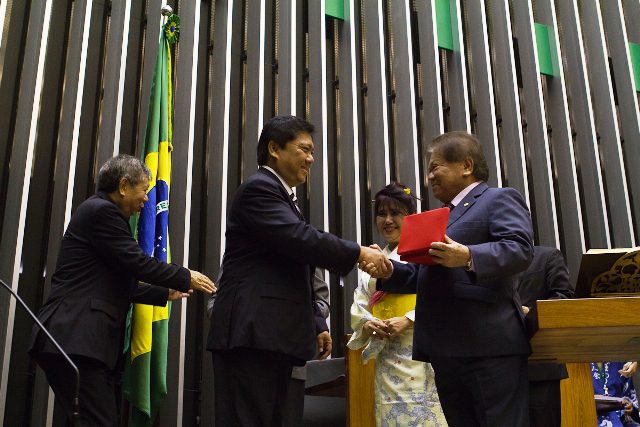 A solenidade foi no Plenário Ulysses Guimarães, na Câmara dos Deputados, onde o governador de Mato Grosso do Sul e o vice-prefeito de Três Lagoas, entre outras autoridades, foram homenageados pelo Grupo Parlamentar Brasil-Japão.