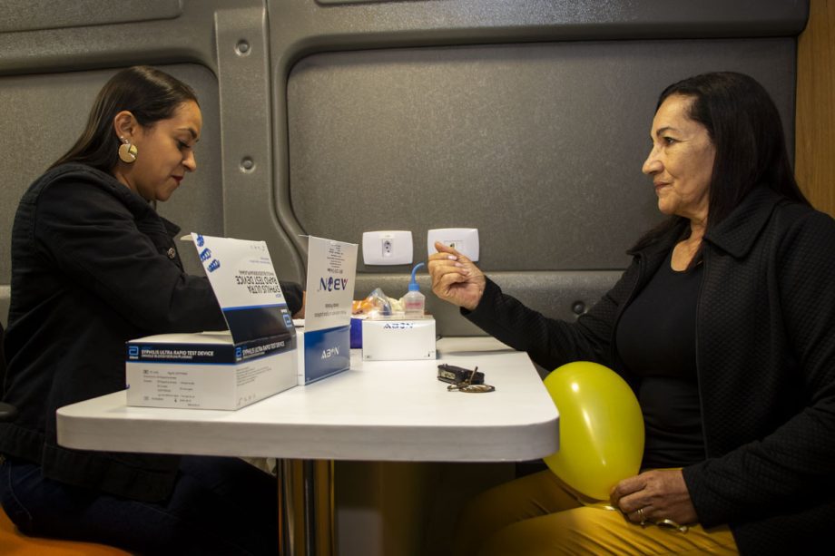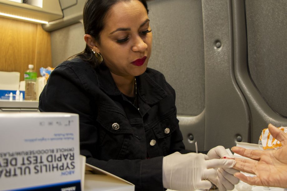 Os profissionais da saúde realizaram teste rápido das Hepatites B e C, HIV e Sífilis, distribuiram de materiais informativos relacionados a essas doenças e preservativos.