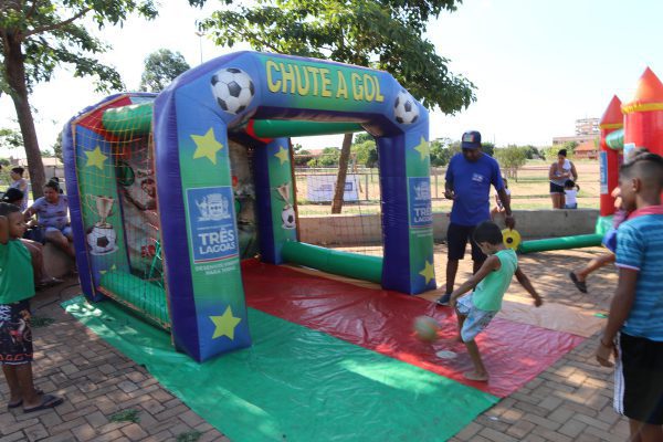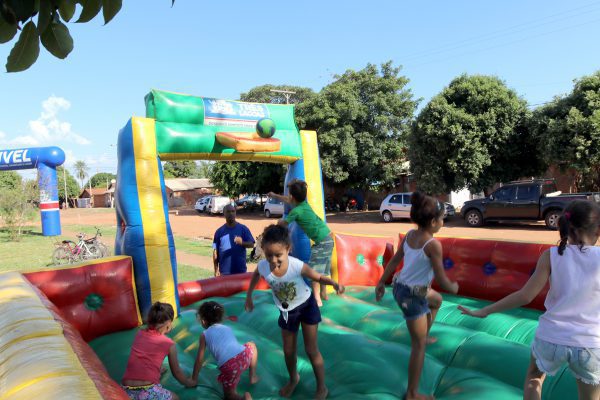 As crianças se divertiram com os brinquedos infláveis, jogos de mesa, mini vôlei, futebol mirim, corrida de 70 metros, queimada, bete (taco) e pintura facial. Esta é a primeira edição do “Mais Lazer nas Comunidades” de 2019 e, a SEJUVEL pretende atender dois bairros a cada mês com o projeto.