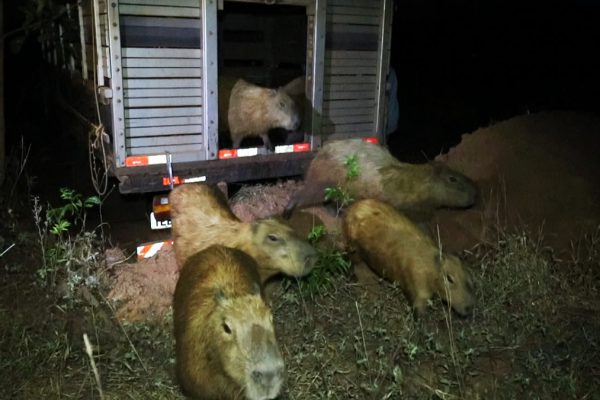 “Desde o início da estiagem, nós começamos a complementar a alimentação delas com cana triturada, alimento que tem boa aceitação e disponibilidade mesmo na estação seca. Em busca de comida, era comum as capivaras se deslocarem para os bairros, correndo risco de serem atropeladas. O Parque do Pombo é vasto e possui vegetação suficiente para que elas se alimentem bem, sem contar que é cercado por córregos. Este trabalho é único e exclusivo para proteger e garantir o bem-estar dos animais”, explicou.