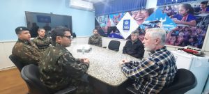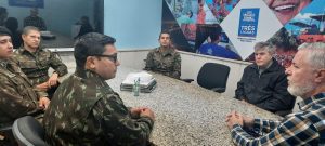 Após a inspeção na sede da Junta Militar de Três Lagoas que é composta pelos servidores municipais Marcos César Gonçalves e Carla Renata Silveira, a equipe visitou o gabinete do prefeito Angelo Guerreiro e foi recepcionada pelo chefe de gabinete e secretário de Desenvolvimento Econômico, Ciência e Tecnologia (SEDECT), o também militar de carreira coronel José Moraes.