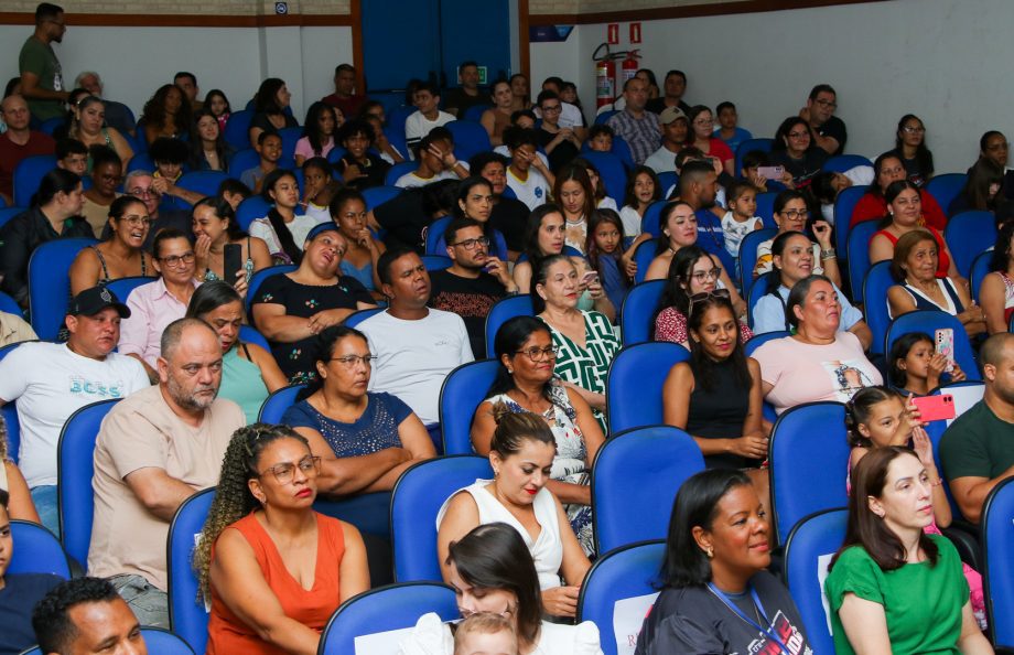 A 4ª edição do The Voice Kids AABB encantou o público na noite de terça-feira, 25 de novembro, no auditório do Sest Senat, reunindo dezenas de famílias, amigos e apoiadores da comunidade. O evento contou com a participação de alunos do Serviço de Convivência e Fortalecimento de Vínculos (SCFV) e lotou o espaço, que vibrou a cada apresentação.
